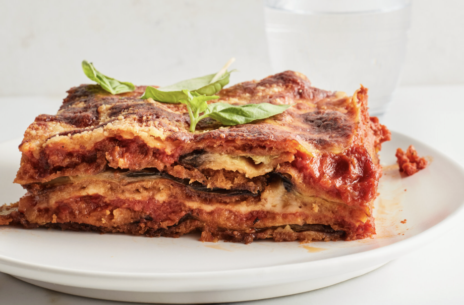 Crisp layers of eggplant baked with prosciutto cotto, buffalo mozzarella, Parmigiano, and pecorino, all cloaked in a silky, spicy tomato–vodka sauce.